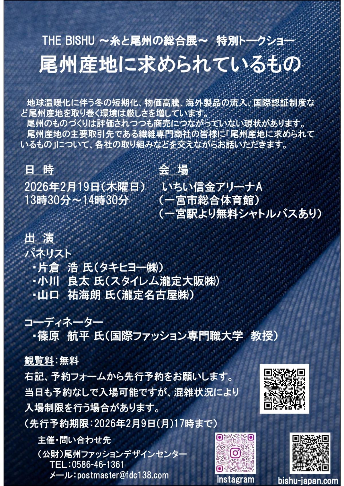 日本一の毛織物産地である、尾州の最新情報やトピックスをお伝えします。