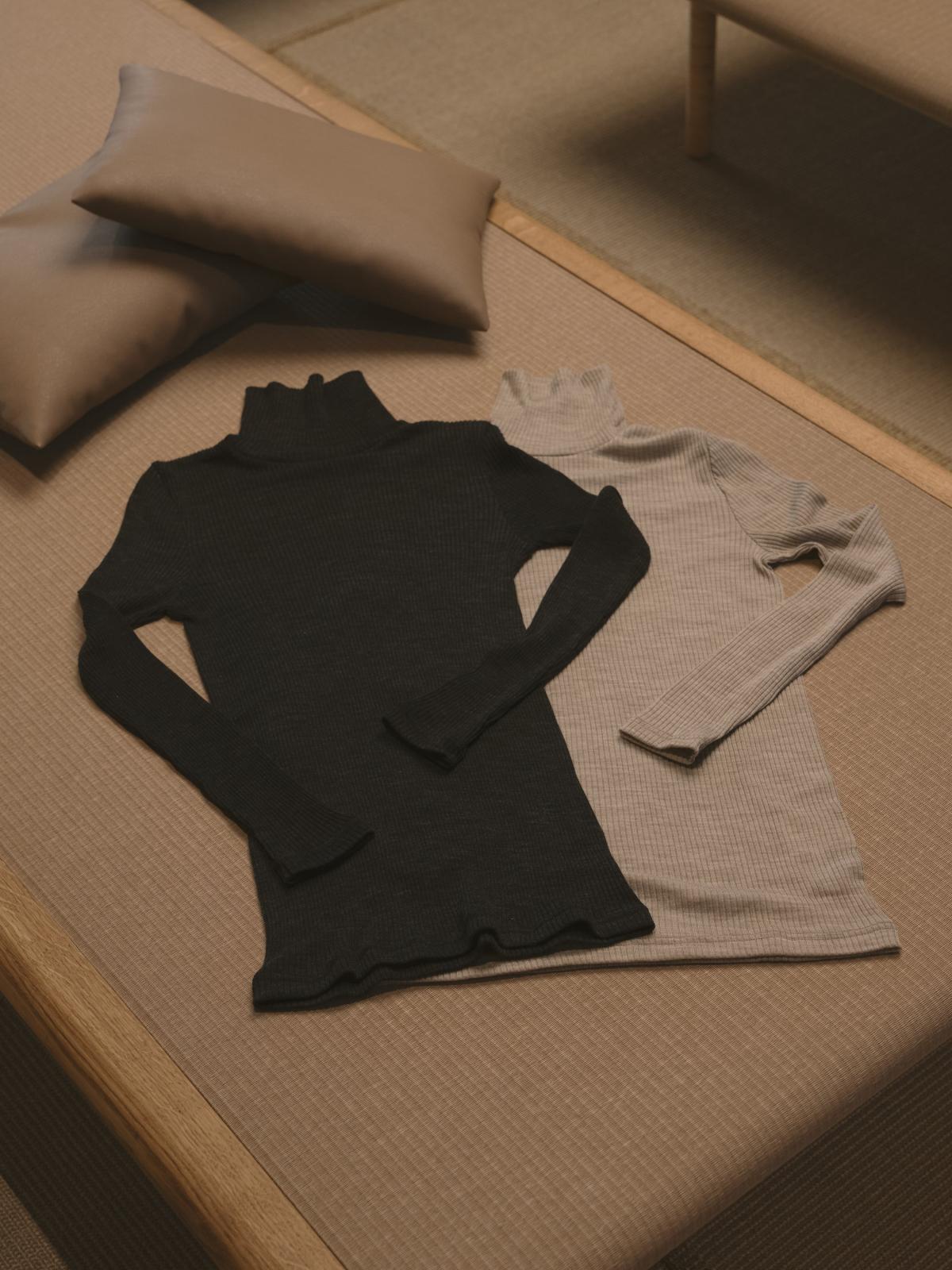 素肌にも着れるウール糸として、ふんわり軽くチクチクしない風合いの生地に
