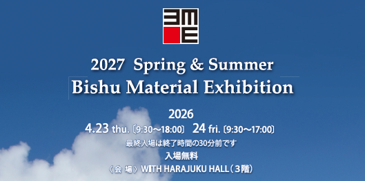 公益財団法人尾州ファッションデザインセンター(以下、「FDC」)は4 月23 日から2 日間、「2027 Spring&Summer Bishu Material Exhibition」(BME)を東京都渋谷区神宮前のWITH HARAJUKU HALL で開催する。