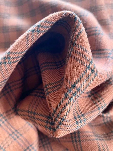 テラコッタカラーのミニチェック生地。