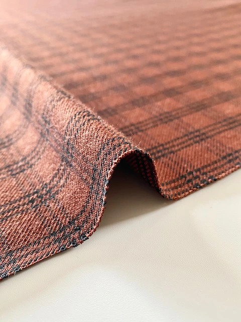 テラコッタカラーのミニチェック生地。