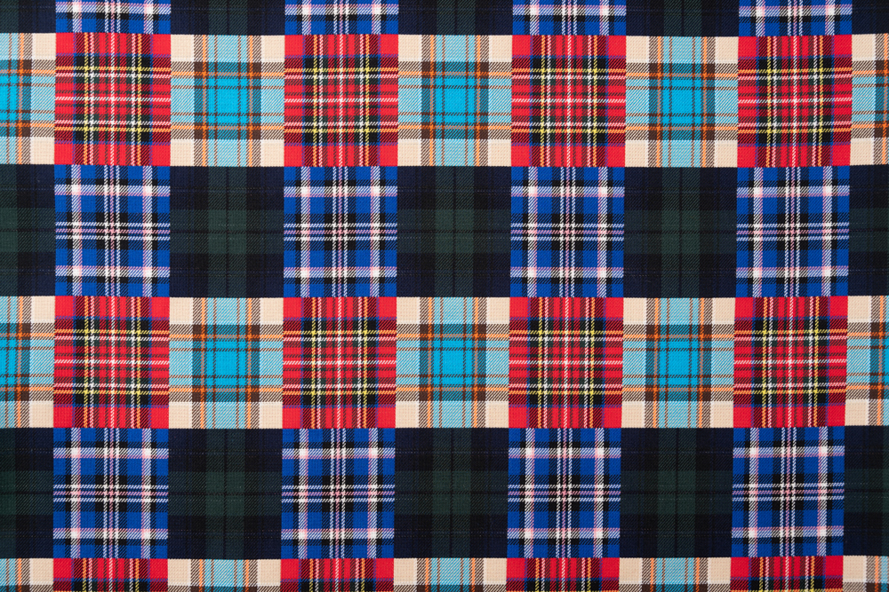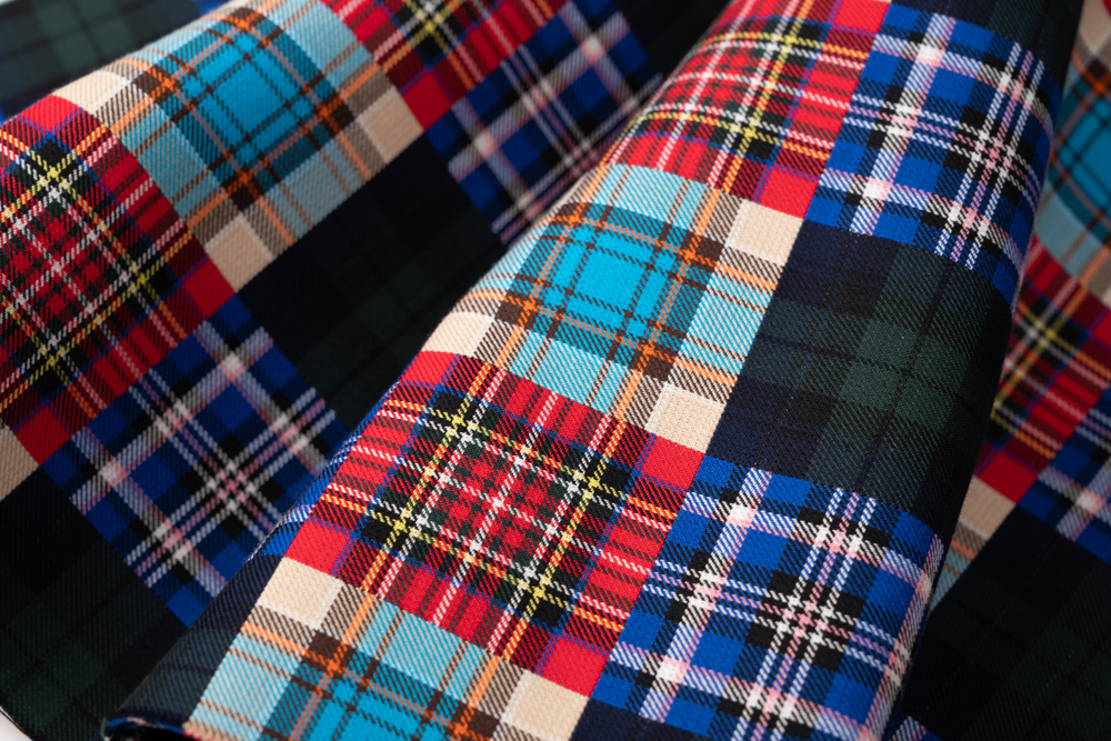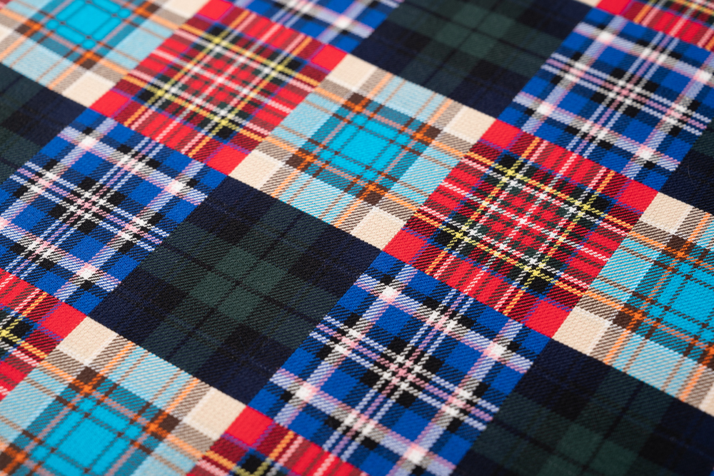 経糸、緯糸共に各12色の糸を使用したクレイジーチェックの生地になります。