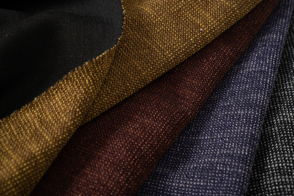 温かみを感じるウール混。カラー原着と交編している先染めダブル