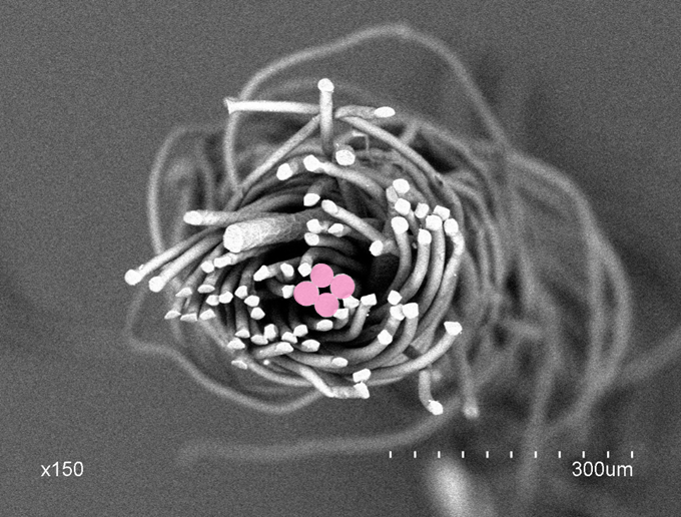 ・長短複合糸D1のステープルカバー率は70%程度ですが、当社独自設備による2層構造糸のカバー率は95%以上のコアヤーンとなります。