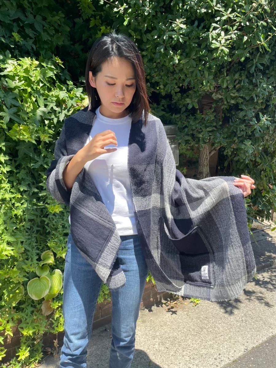 羽織ったり、巻いたり、ひざ掛けにしたりと、暖かさを体全体で感じて頂けると思います。