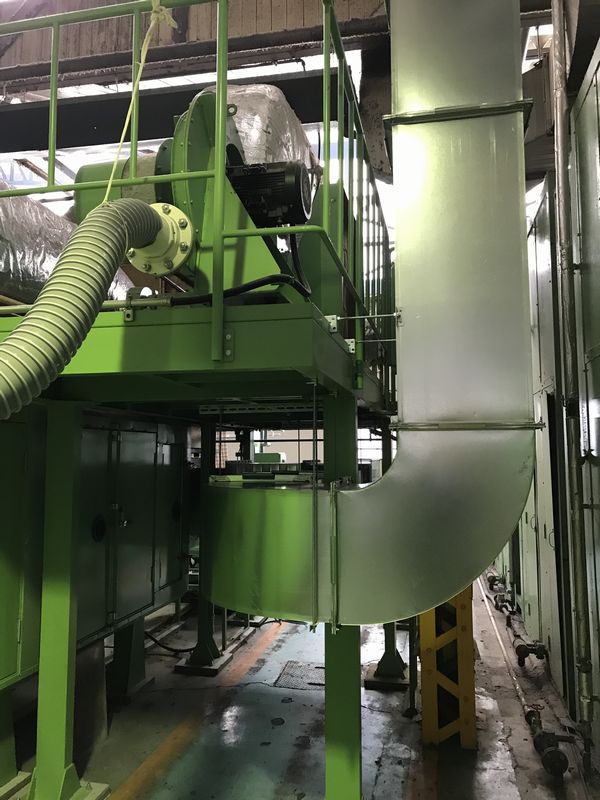 熱処理機(ヒートセット)というのは、給気した空気をガスを燃焼させて加熱し、熱風を生地に吹き付けて加工するという設備です。このとき出た排熱はそのまま排気ガスとして大気に放出していました。