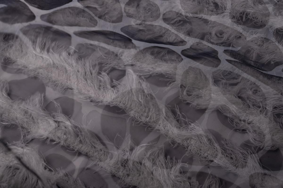 | シアーなオーガンジープリントに挟まれた中から透けて見える廃棄物の織物の耳のフリンジが透明感の中に一筋の意思のように感じられ、光にかざしたときのピュアでクリーンな清清しさに大変魅力を感じました。 再利用の発想も今後不可欠になってくるテーマだと思います。 今後の桐山さんのご活躍を期待しています。頑張ってください。 審査員 ㈱オンワード樫山 松田 博子 |