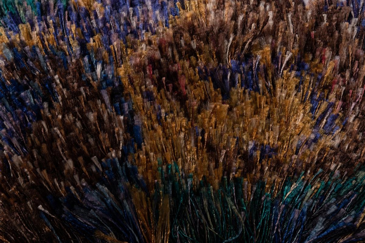 プリントされた基布に様々な色の絣糸を結び付けられ、独自の色彩、触感、躍動感などを巧みに表現されています。 コロナ禍などで日々移り変わる世の中の状況、そしてその中で移ろいでいく山根さんご自身の感情の渦(vortex)が上手く表現されています。テキスタイルは視覚、触覚などに作用して様々な表現が可能です。 山根さんが今後もテキスタイルの世界で様々な創造をされていくことを願っています。 おめでとうございます。