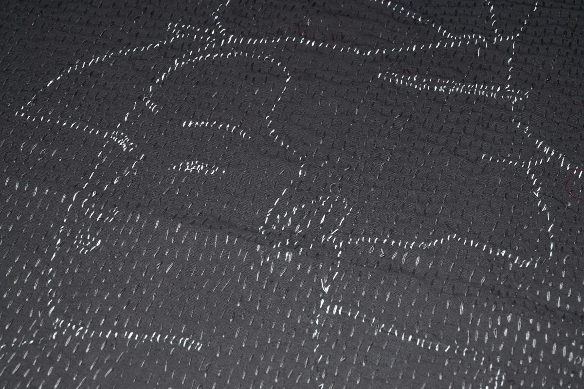 刺し子という伝統的なテキスタイル技法にリフレクター糸を目立たないようグレーで配置し、現代的でスポーティな印象を作り出しているポイントを高く評価しました。 本作品を用いて自転車用ブルゾンなどを作ると、浮世絵モチーフが隠れたアクセントになるユーモア溢れた、アーバンライフの機能性を伴った服ができそうだなと想像しました。