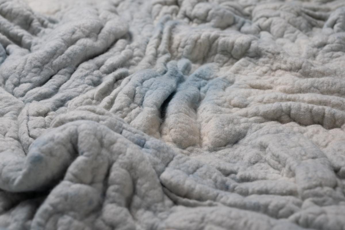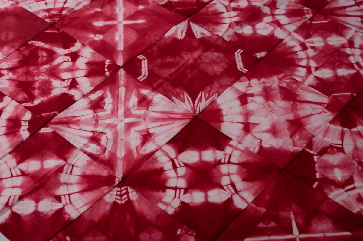 非常にアーティザナルな空気を帯びた色彩表現に突出したセンスを感じました。 天然染料で染めた時点である一定の表情は作れたと思いますが、そこからもう一歩踏み込んで箔加工と硫黄散布を施した所に作者の強い思いとこだわりを感じました。 色彩の中にちりばめられた硫黄で加工した箇所が膨張しがちな柄を引き締め、同時に独創的なテクスチャーへ引き上げている印象を受けました。 洋服があふれる現代において、人々は商品の美しさと同時にその生産過程やストーリーにも興味をもっています。 このテキスタイルには人々をその両方で魅了する力があると感じました。