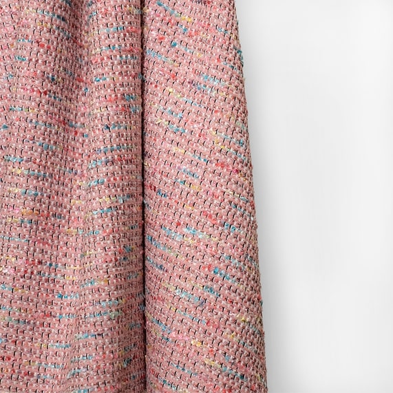 グラデーションのフラッグヤーン、多色ラメチェーンなど意匠糸ふんだん使い、豪華なファンシーツイードです。