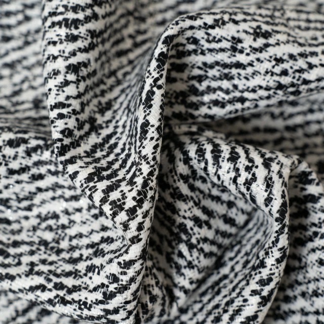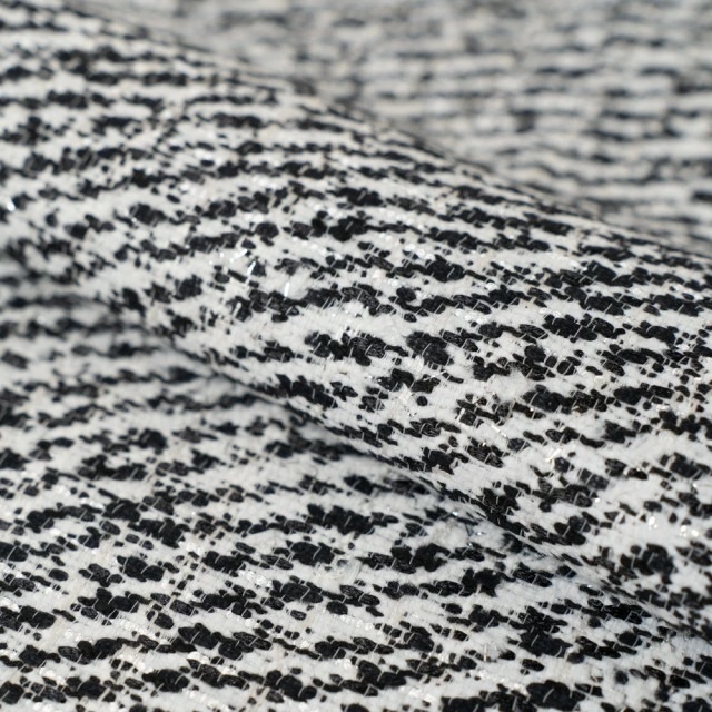 シックな黒白カラーですが、テープヤーンやシルバーラメも使用した贅沢な一品。