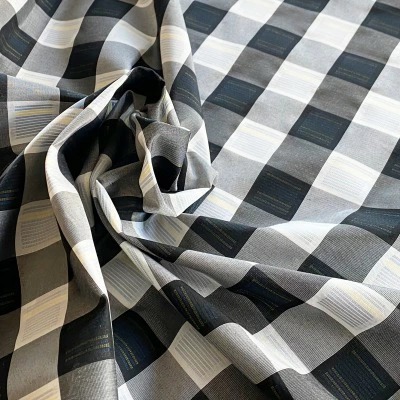 とてもめずらしい形状記憶タイプのカット柄入りチェクジャガードです。