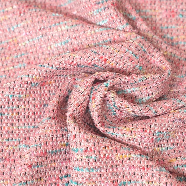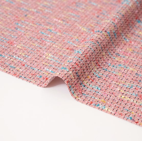 グラデーションのフラッグヤーン、多色ラメチェーンなど意匠糸ふんだん使い、豪華なファンシーツイードです。
