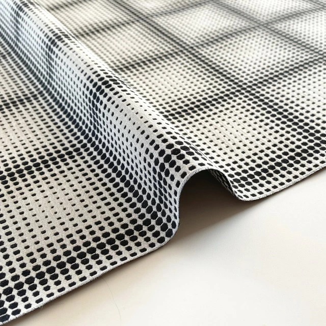 大きな柄のストレッチジャガード、柄内のドットが変化する代わり模様です。